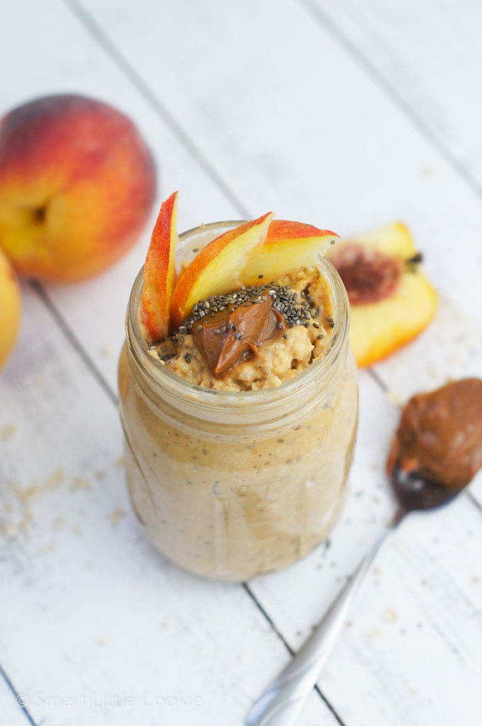 Sweet and creamy, this Peach and Dulce de Leche Overnight Oats is a delicious make ahead breakfast for busy mornings.